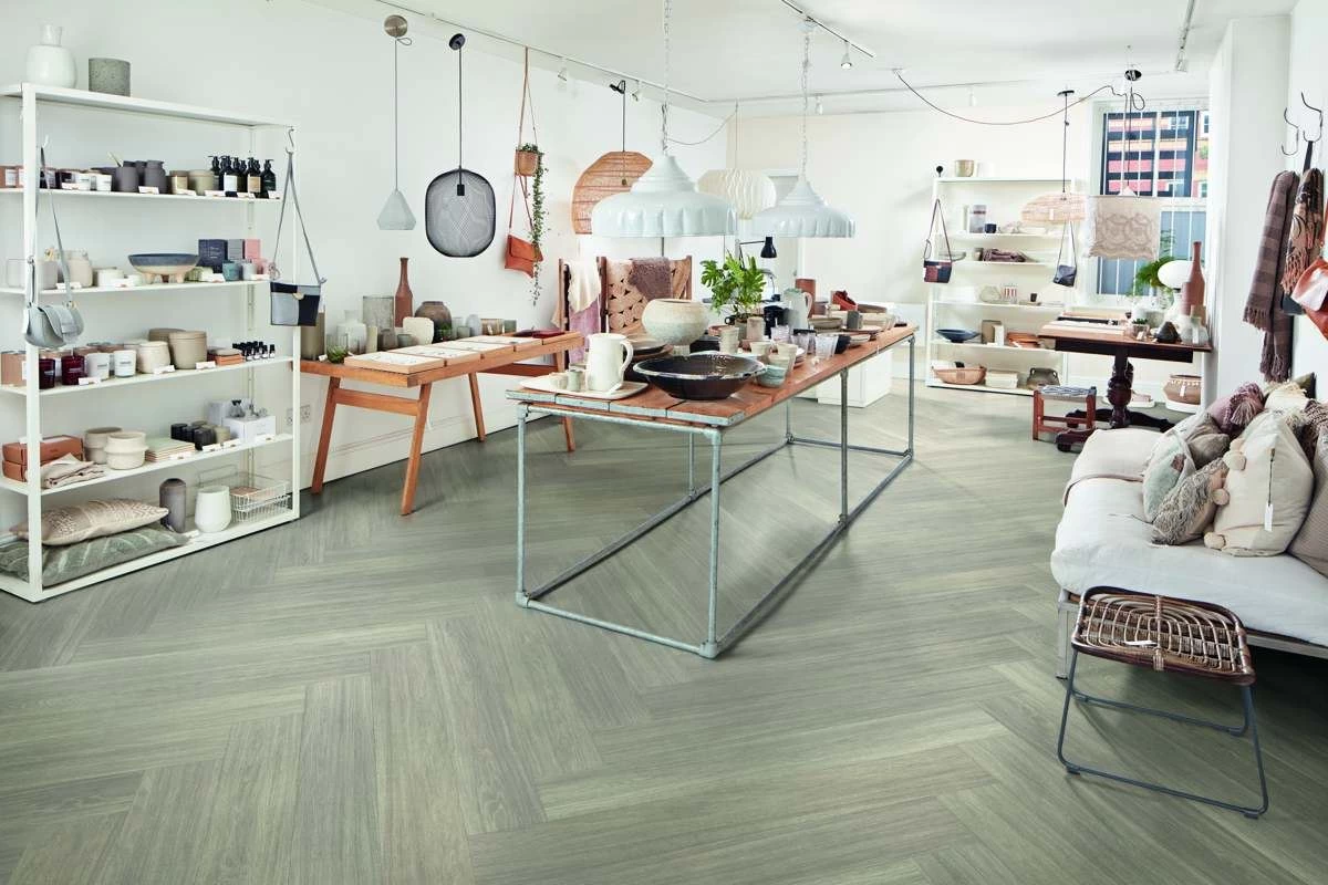 Please note the image depicts a herringbone installation. However, this flooring can also be installed using the traditional straightly method