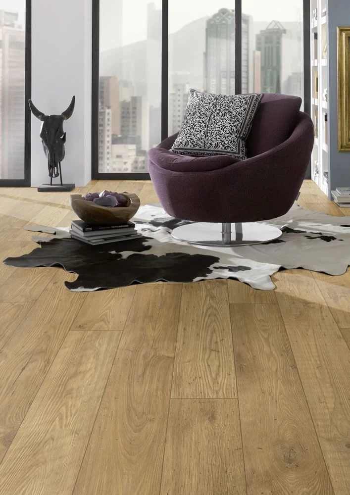 The surface is protected from moisture due to the intergrated “Aquastop Moisture Protection” system which seals the surface so that almost no moisture will penetrate the surface layer.