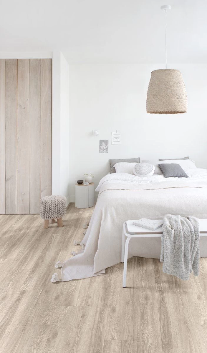 Strong, Soft and Silent. Warm feel and silent acoustics. Integrated underlay for ease of installation. Perfect for uneven subfloors. Lifetime residential warranty.