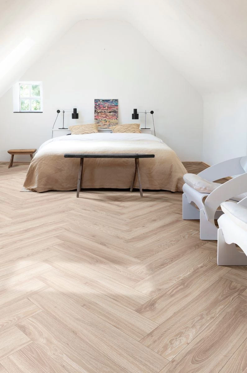 Strong, Soft and Silent. Warm feel and silent acoustics. Integrated underlay for ease of installation. Perfect for uneven subfloors. Lifetime residential warranty.