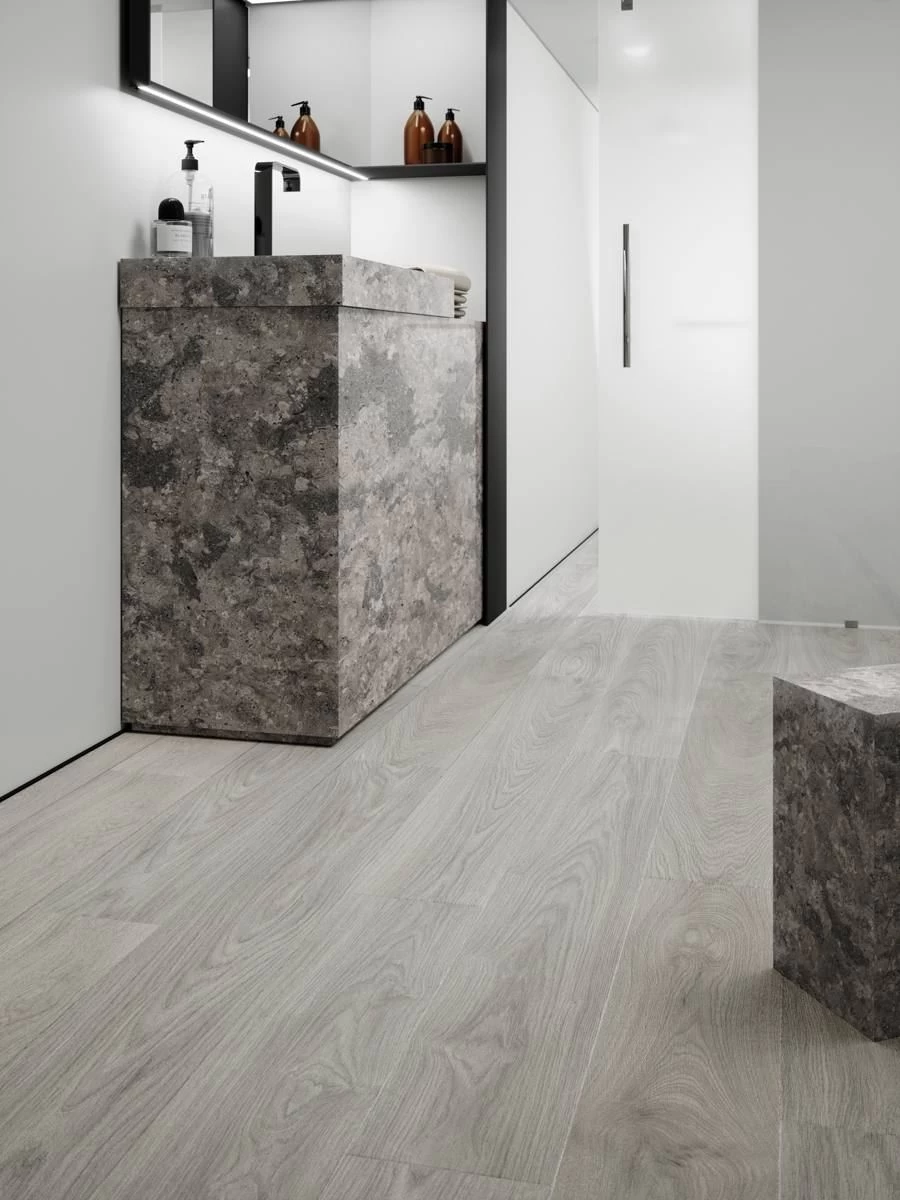 Strong, Soft and Silent. Warm feel and silent acoustics. Integrated underlay for ease of installation. Perfect for uneven subfloors. Lifetime residential warranty. XL Plank