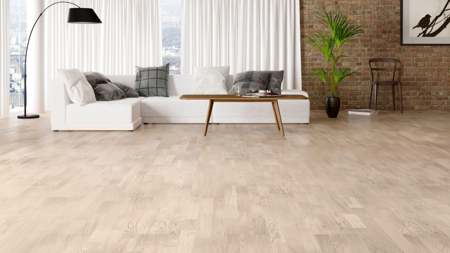 The Natura Oak Staten Island offers a soft, relaxing engineered floor in every sense. The matt lacquer finish sets off a light, white-washed board with a soothing rustic grain. Installation is made incredibly easy by combining a conveniently small 3-strip board with a high quality locking system. And to top it all off this floor is so affordable there’s no need to worry about the price either. All in all, a stress-busting solution for your home!